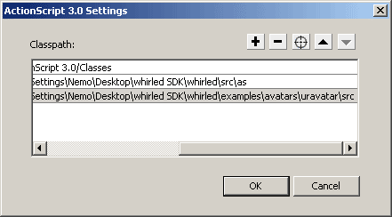 - Once the Whirled SDK has been properly installed, the next step is to add the classpaths to the ActionScript files used in Flash CS3 as shown below.